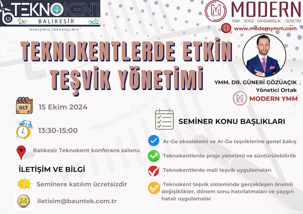 Teknokentlerde etkin teşvik yönetimi semineri- 15.10.2024 Balıkesir Teknokent Etkinlikler Teknokentlerde etkin teşvik yönetimi semineri- 15.10.2024 Balıkesir Teknokent